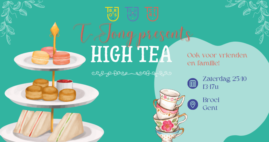 Beste T-jongers, jullie zijn allemaal van harte uitgenodigd op onze High Tea! Breng ook zeker al je vrienden, familie en partners mee!